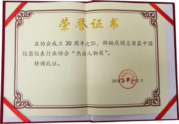 和利時科技集團有限公司CEO邵柏慶榮獲了中國儀器儀表行業協會杰出人物獎