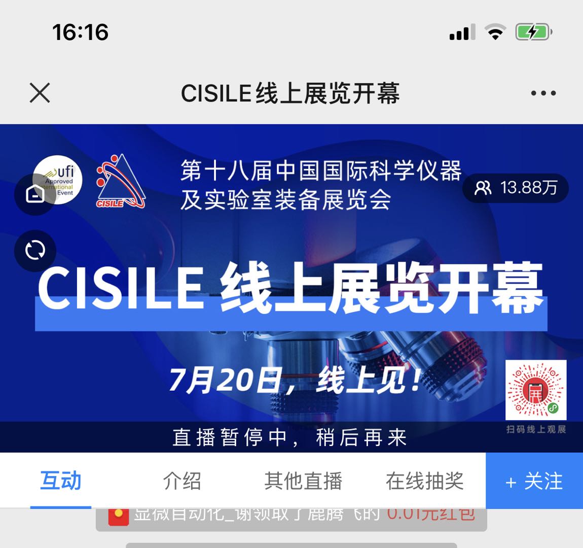 為助益科學儀器生產及銷售企業效益恢復、宣傳推廣,助力復蘇科學儀器行業,由中國儀器儀表行業協會主辦的“中國國際科學儀器及實驗室裝備展覽會(CISILE)”首次策劃籌備的“CISILE線上展覽”系列活動于2020年7月20日隆重開幕。