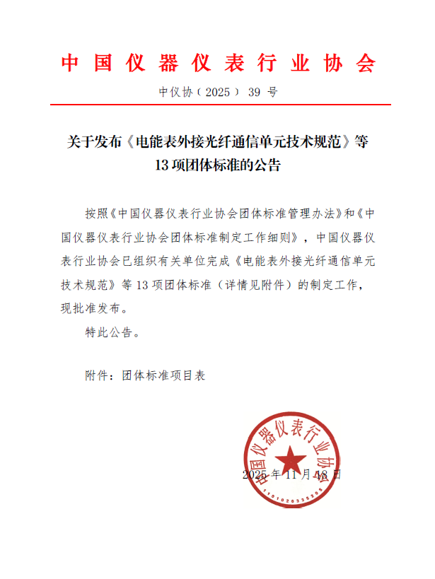 關(guān)于發(fā)布《電能表外接光纖通信單元技術(shù)規(guī)范》等13項